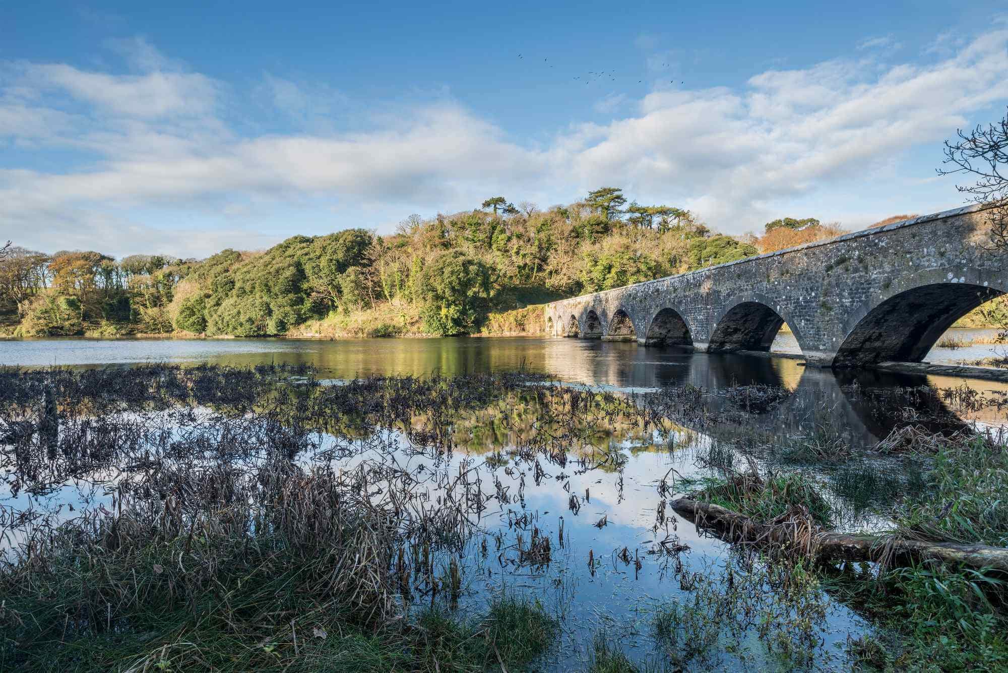 - Here you have a choice - you can not cross and turn left, which will take you up for a look at the eight-arch bridge. Crossing the bridge and following the path thereafter will take you to Stackpole Quay and the coast path. For this walk, we’re going to cross the causeway.