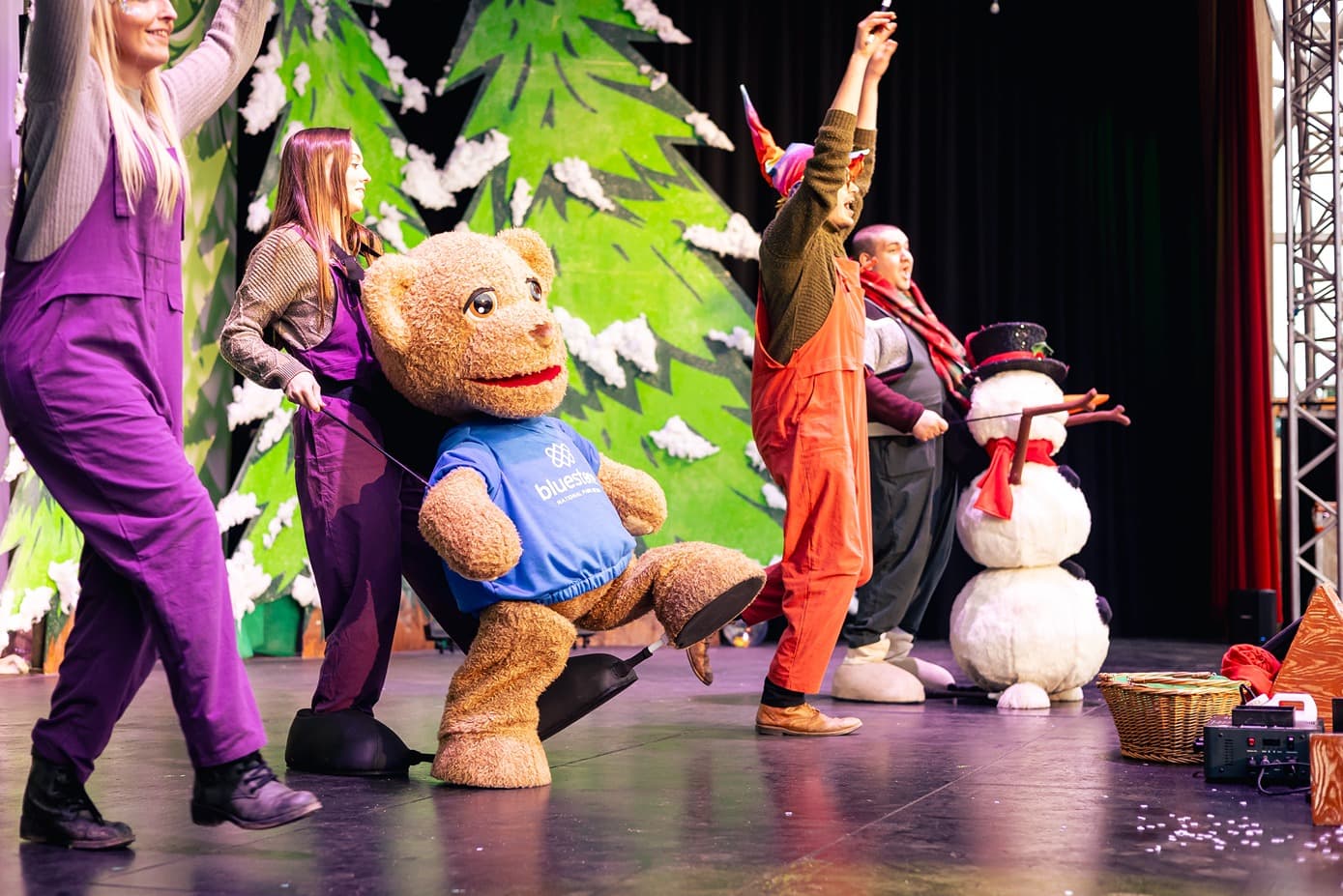 Dance with glowing headphones and energetic winter tracks in a lively family party.